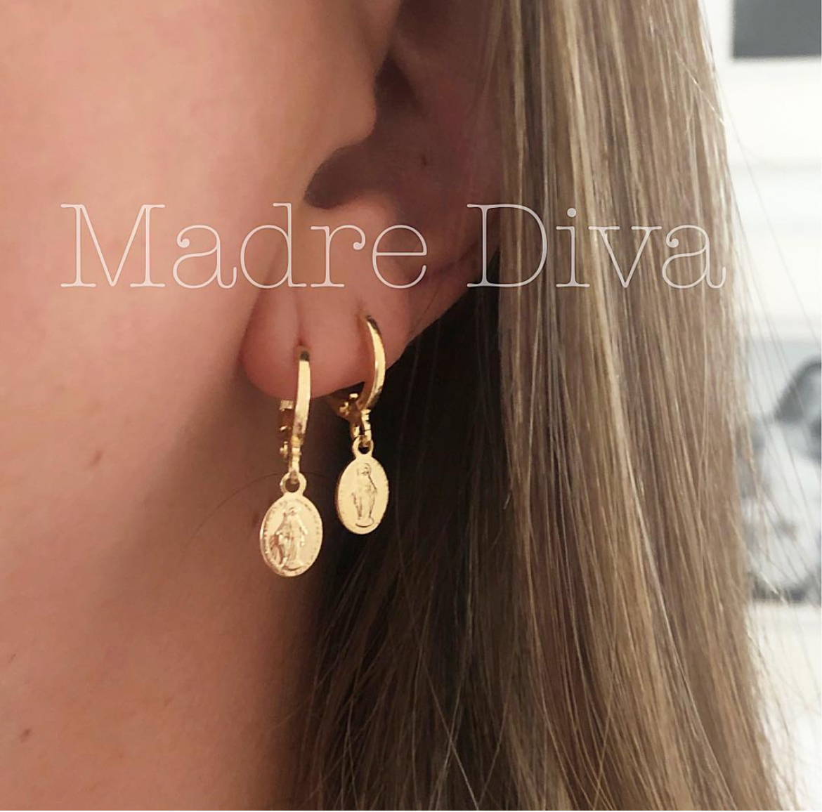 Brinco argola clic com pingente nossa senhora das graças