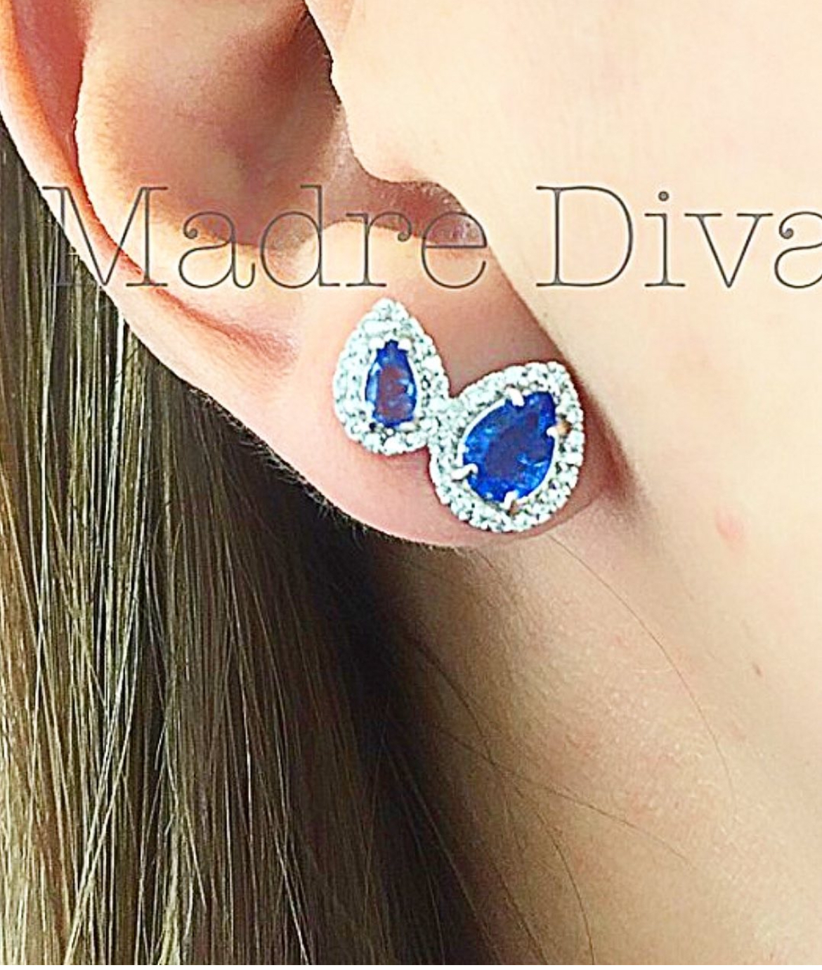 Lindo brinco Zirconia cor azul safira ródio branco antialérgico