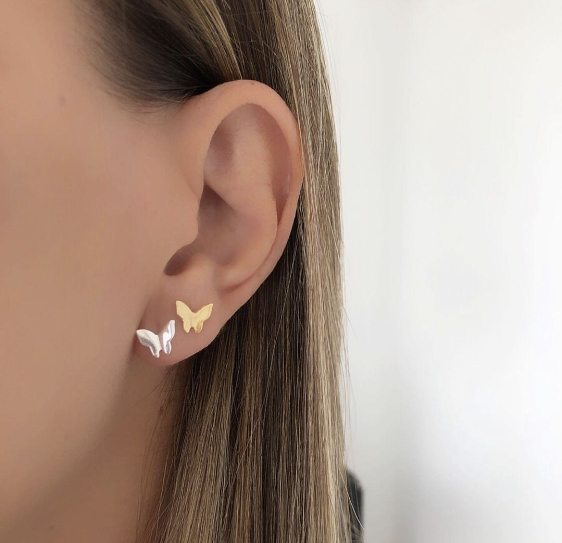 Lindo brinco pequeno minimalista borboleta ouro 18 banhado