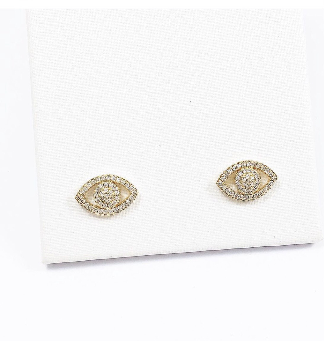 Brinco olho grego com zircônias cravejadas e banho de ouro