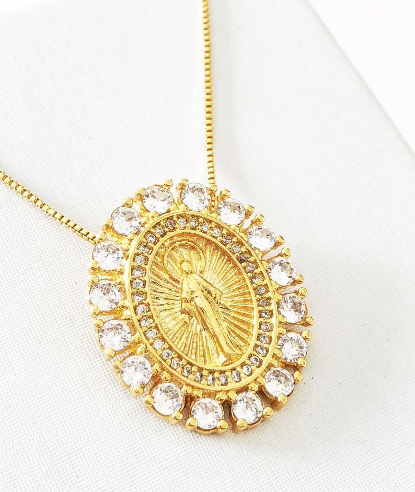 lindo colar medlha nossa senhora das gracas com detalhes em zirconias