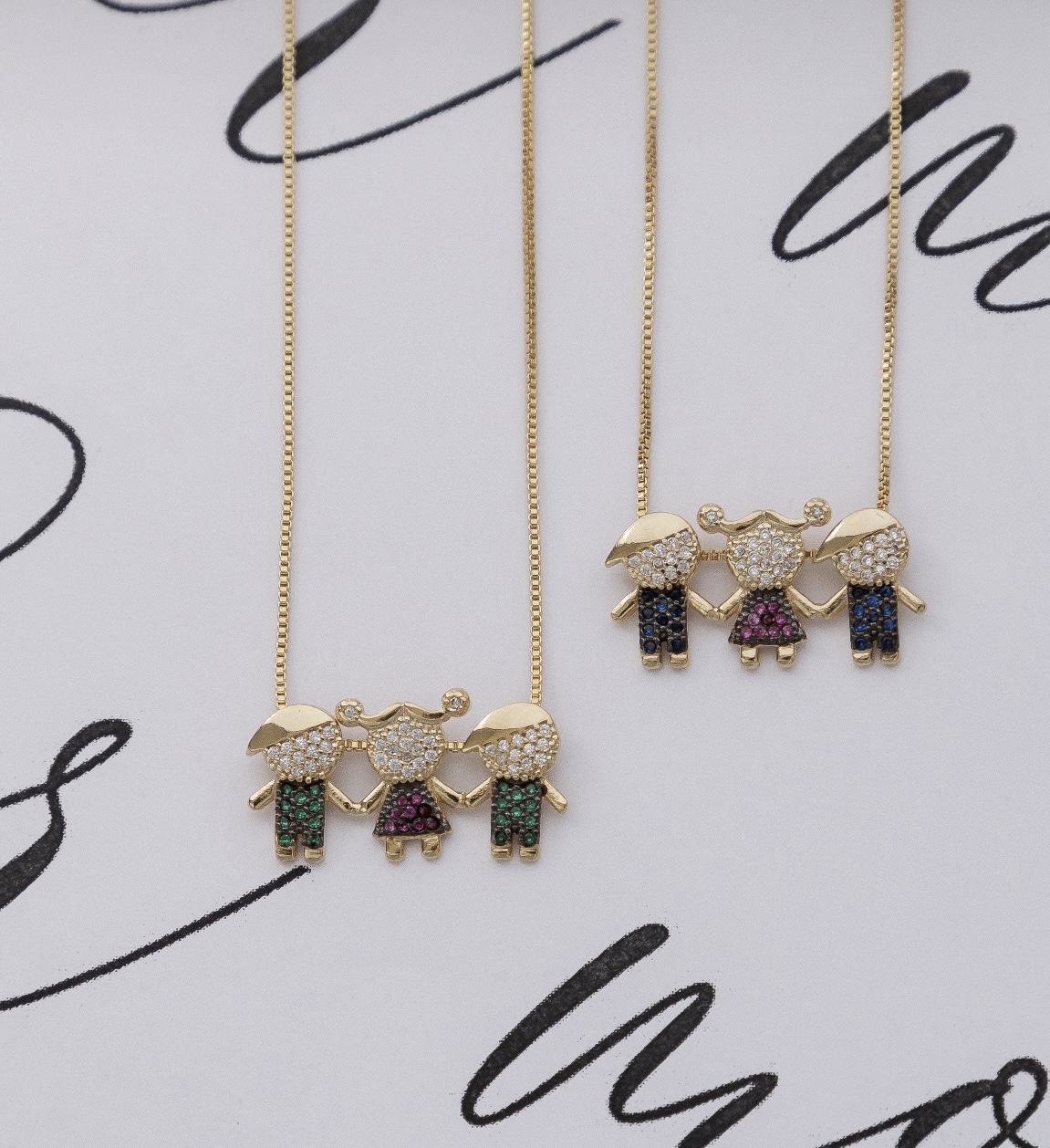 Na observação do pedido coloque a cor dos pingentes e a ordem desejada dos filhos (por ex : menina no meio )
