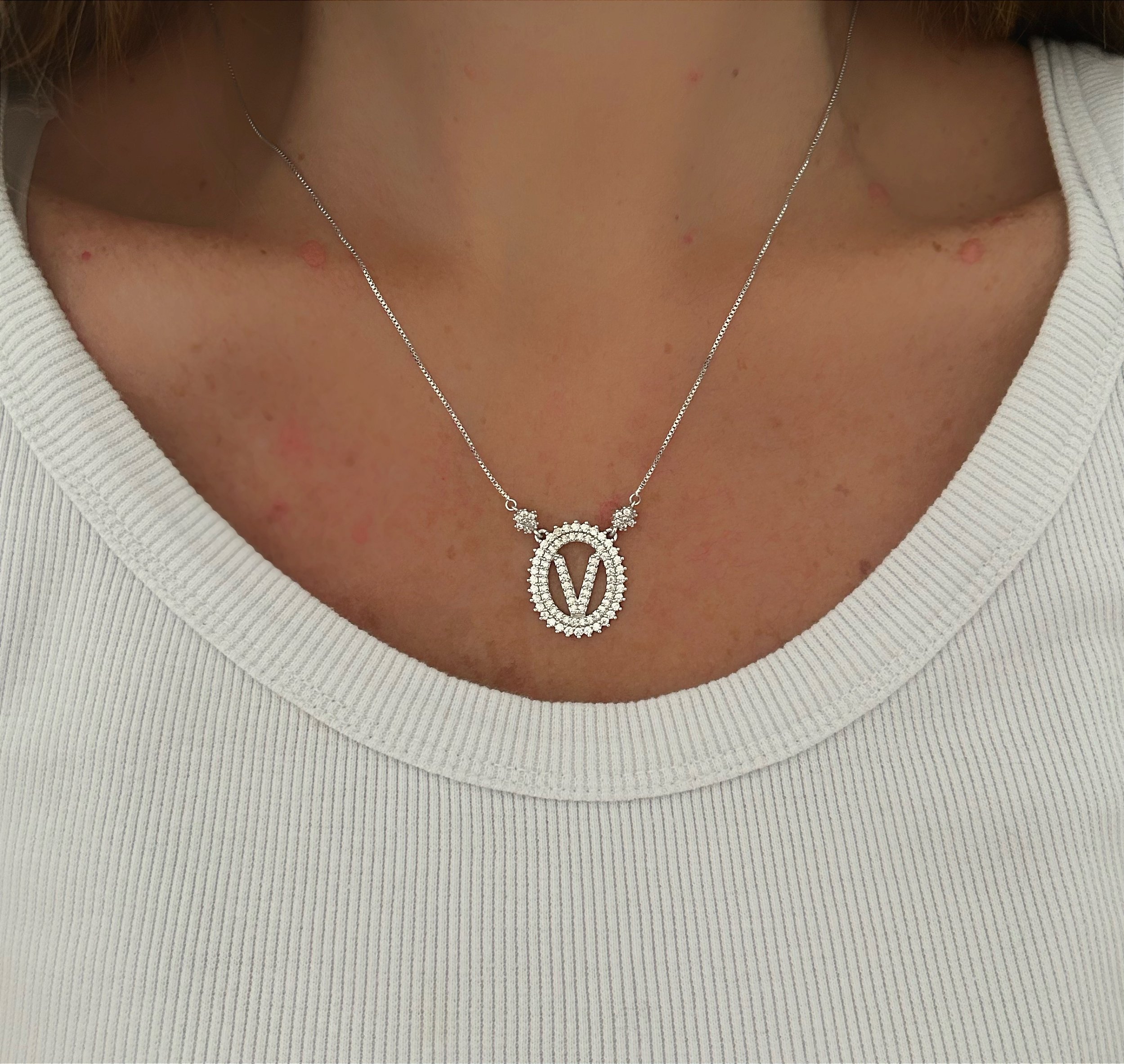Colar inicial Do nome todo cravejado em microzirconias no ródio branco Super elegante e Chic